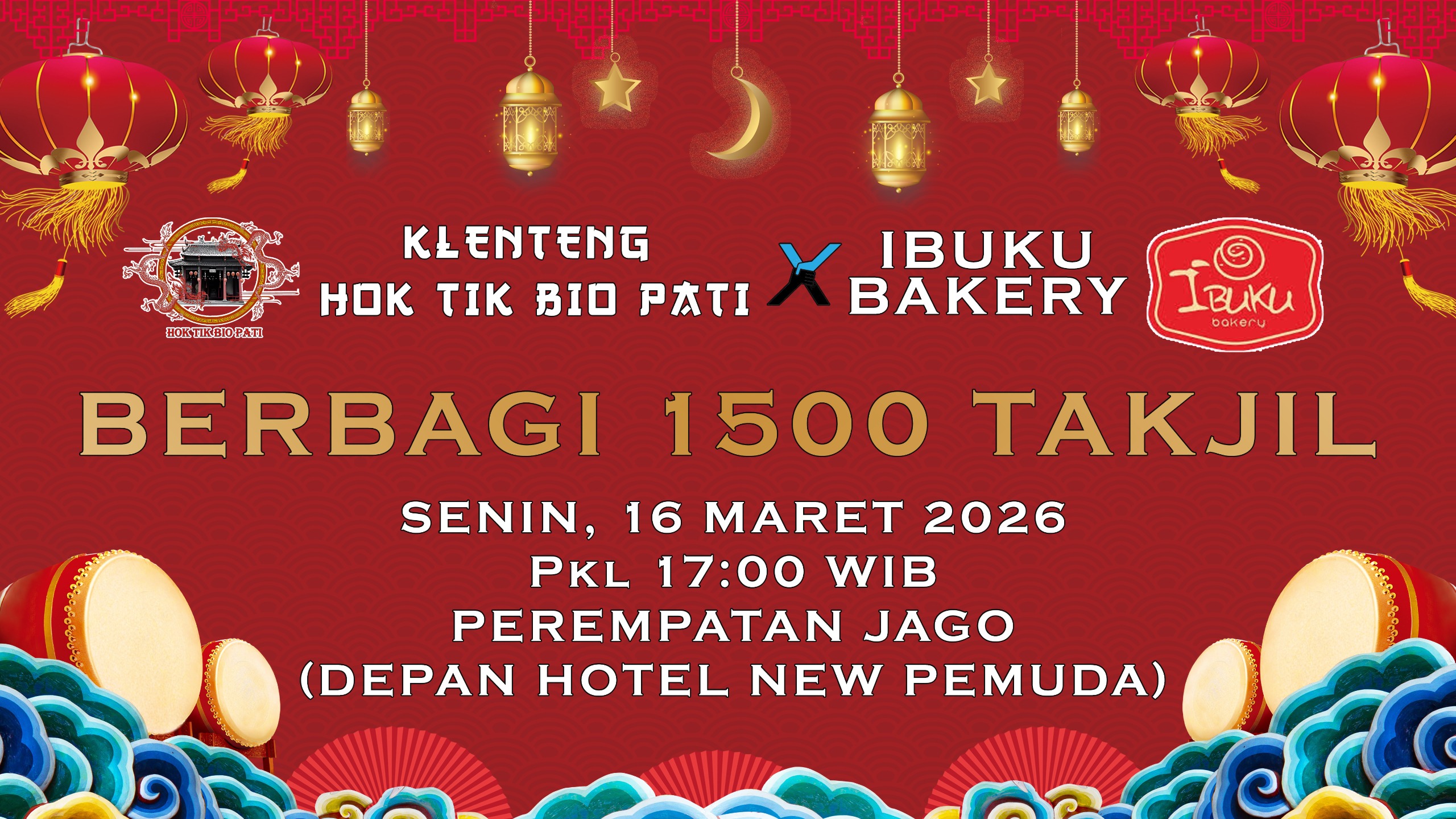 Tepat di depan Hotel New Pemuda, persiapan ini akan dimulai pembagian oleh pengurus Klenteng Hok Tik Bio Pati bersama Ibuku Bakery, Senin (16/3/2026) sore.